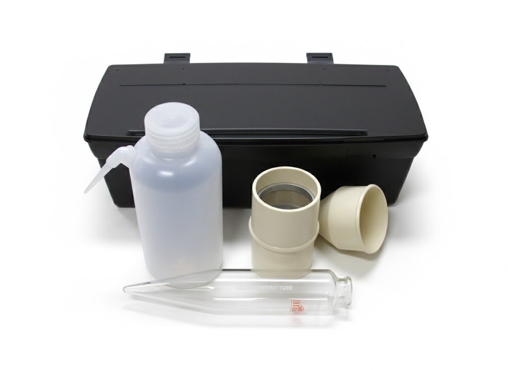 The Sand Content Kit utilizes a simple sieve analysis method to quickly measure the concentration of abrasive, sand-sized particles in the drilling fluid.
